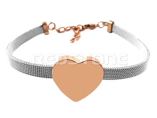Dámsky náramok z chirurgickej ocele s pozláteným srdiečkom.