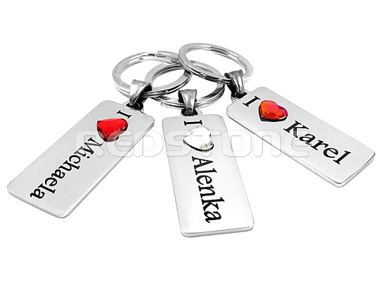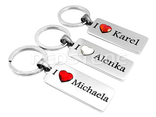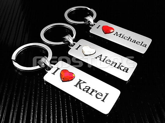 Kľúčenku štandardne dodávame vo formáte I ♥ Meno