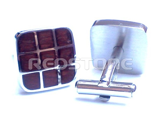 Manžetové gombíky z chirurgickej ocele v lesklom prevedení v kombinácii s drevom.