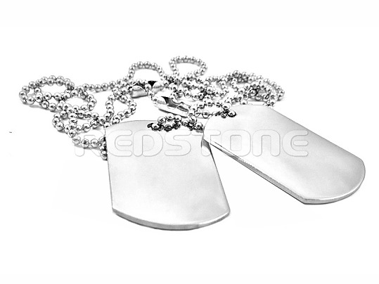 Vojenské známky z chirurgickej ocele s guličkovou retiazkou z chirurgickej ocele.