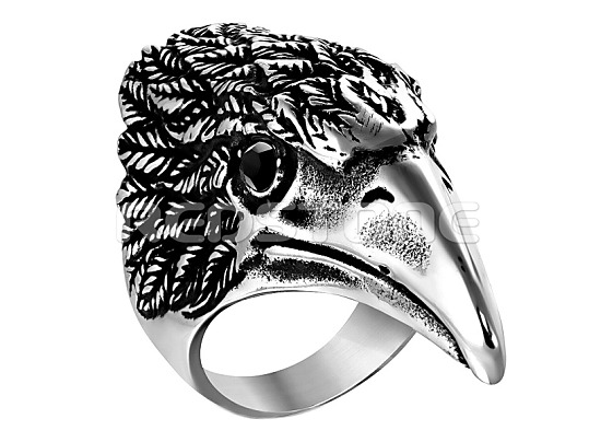 Masívny motorkársky prsteň z chirurgickej ocele s hlavou orla v kombinácii s čiernymi zirkónmi.