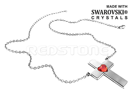 Náhrdelník z chirurgickej ocele, krížik so srdiečkom Swarovski Crystals