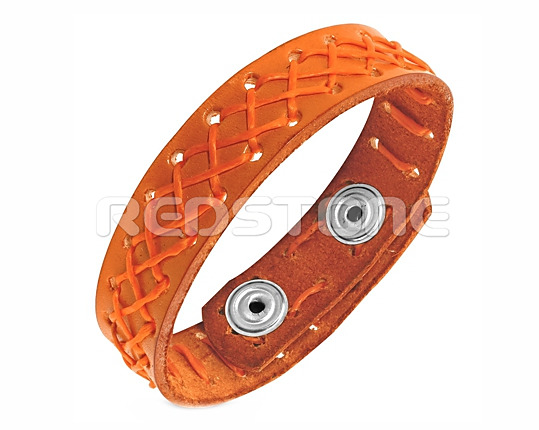 Oranžový kožený náramok v kombinácii so šnúrkami. Náramok je možné zapnúť v dĺžke 190 mm a 210 mm Šírka náramku: 15 mm