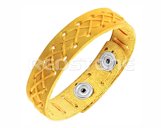 Žltý kožený náramok v kombinácii so šnúrkami. Náramok je možné zapnúť v dĺžke 190 mm a 210 mm Šírka náramku: 15 mm