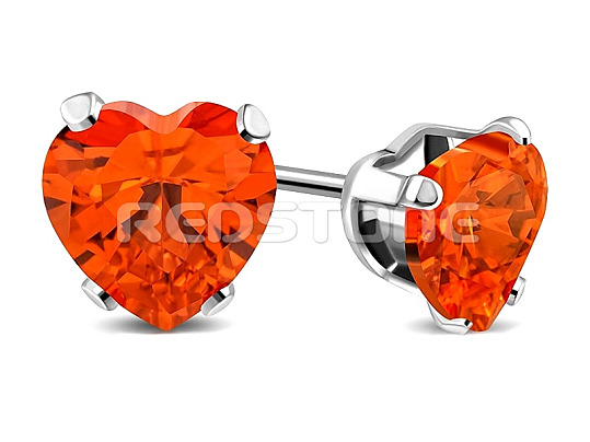 Náušnice z chirurgickej ocele s červeným zirkónom v tvare srdiečka.
