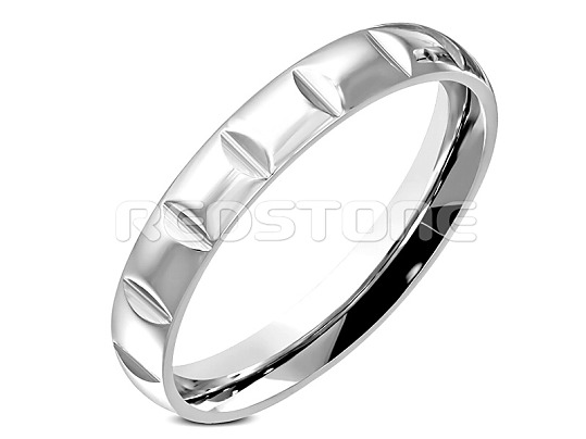 Obrúčka z chirurgickej ocele v lesklom prevedení v kombinácii s matným vrúbkovaním.