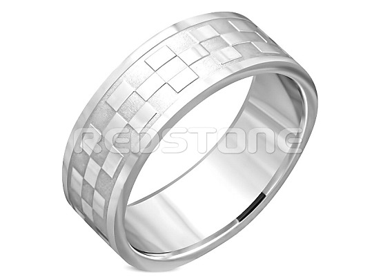 Obrúčka z chirurgickej ocele so šachovnicovým vzorom.