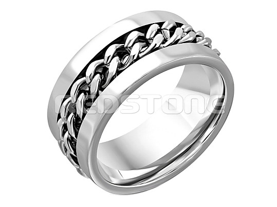 Obrúčka z chirurgickej ocele v lesklom prevedení v kombinácii so vsadenou rotujúcou retiazkou.