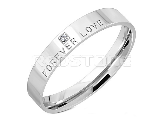 Obrúčka z chirurgickej ocele v lesklom prevedení. Obrúčka s textom FOREVER LOVE.