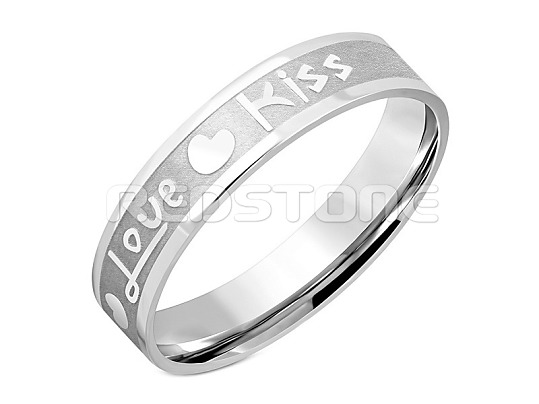 Obrúčka z chirurgickej ocele s nápisom ♥ Love ♥ Kiss