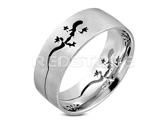 Obrúčka z chirurgickej ocele s jaštericou v matnom prevedení.