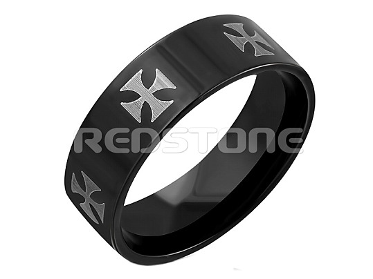 Prsteň z chirurgickej ocele v čiernom prevedení s maltézským krížom.