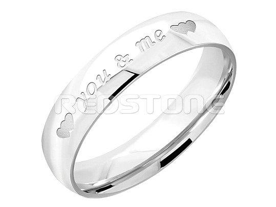 Lesklá obrúčka z chirurgickej ocele s textom you & me.