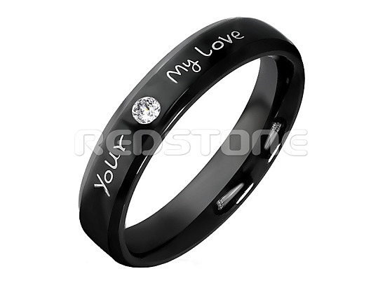 Obrúčka z chirurgickej ocele v čiernom prevedení so zirkónom a textom Your My Love.