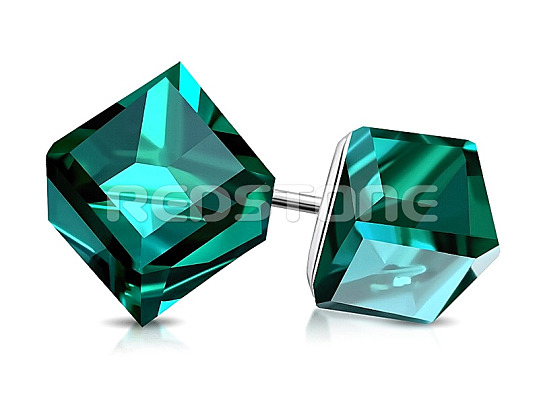 Náušnice z chirurgickej ocele osadené zelenými krištáľovými kockami.
