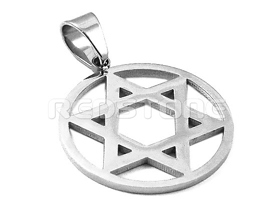 Prívesok z chirurgickej ocele s lesklým povrchom, prívesok Dávidová hviezda. Priemer prívesku: 35 mm Priemer otvoru na retiazku: 6 mm