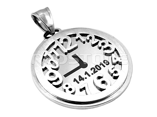 Prívesok v tvare hodín s časom a dátumom podľa vášho zadania.