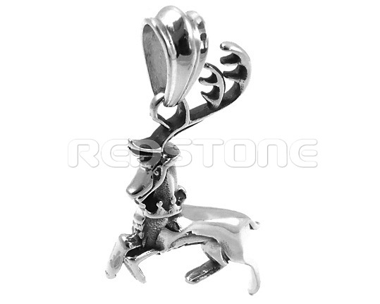 Prívesok z chirurgickej ocele s lesklým povrchom, prívesok v tvare jeleňa. Rozmer prívesku: 36 x 48 mm (rozmer bez uchytenia) Priemer otvoru na retiazku: 6 mm Prívesok jeleňa určite poteši ako darček každého poľovníka.