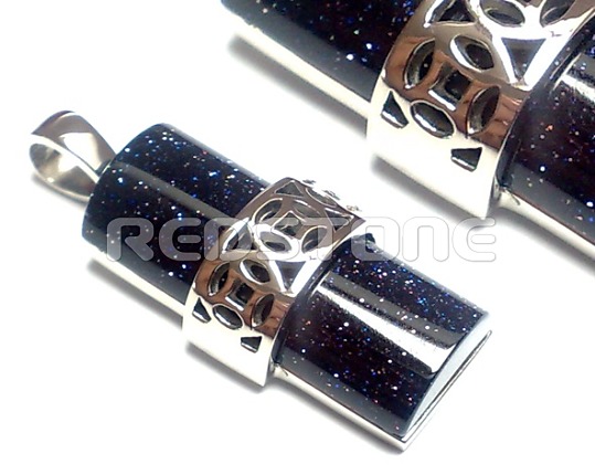 Prívesok z chirurgickej ocele s lesklým povrchom v kombinácii s kameňom Noc Kairu. Rozmer prívesku: 12 x 35 mm