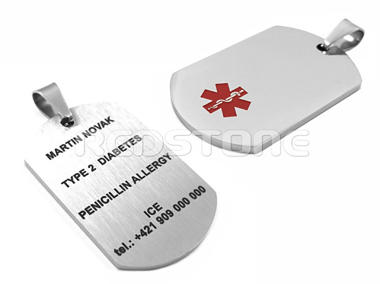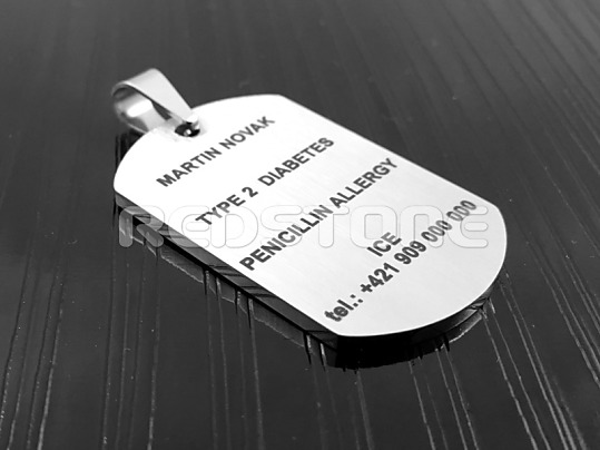 Vami požadované údaje je potrebné uviesť v poznámke pri objednávke. Tento prívesok je určený hlavne pre zdravotné údaje a prípadne kontaktné údaje.