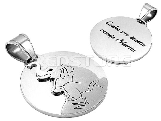 Prívesok z chirurgickej ocele - slon s venovaním prípadne akýmkoľvek vygravírovaným textom.
