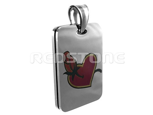 Prívesok v lesklom prevedení s vygravírovaným srdiečkom s ružou a textom z vnútornej strany prívesku.