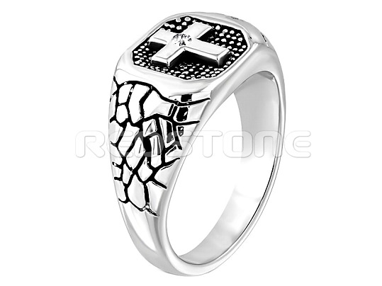 Prsteň z chirurgickej ocele s krížikom. Prsteň v lesklom prevedení osadený zirkónom.