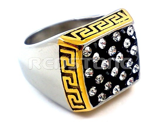 Prsteň z chirurgickej ocele. Šírka: 4 / 13 mm. Šperk z chirurgickej ocele v lesklom prevedení v kombinácii so zirkónmi.
