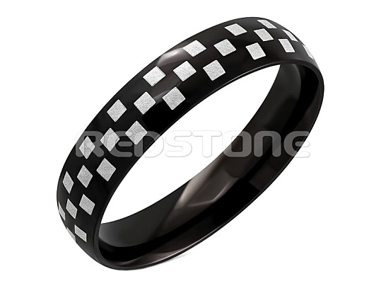Prsteň z chirurgickej ocele čiernej farby so šachovnicou.