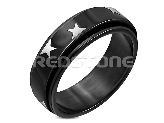 Rotačný prsteň z chirurgickej ocele, prsteň v čiernom prevedení s hviezdami.