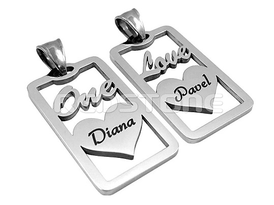 Sada dvoch príveskov pre páry, prívesky ONE LOVE z chirurgickej ocele s menami podľa Vášho zadania.
