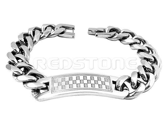 Náramok z chirurgickej ocele v lesklom prevedení s platničkou so šachovnicovým vzorom.