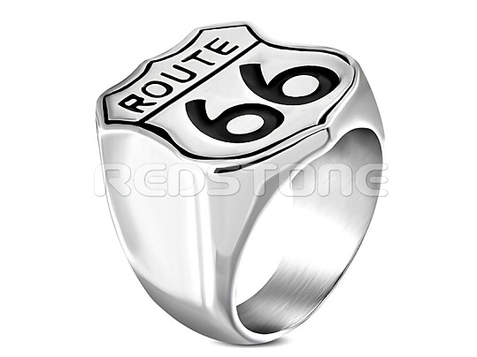 Masívny pánsky oceľový prsteň ROUTE 66, prsteň v lesklom prevedení.