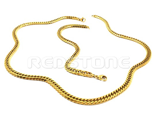 Pozlátená súprava šperkov z chirurgickej ocele, súprava obsahuje retiazku a náramok