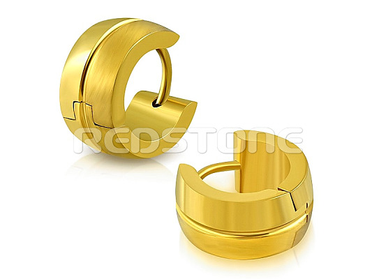 Pozlátené náušnice z chirurgickej ocele, náušnice v kombinácii lesklého a matného povrchu.