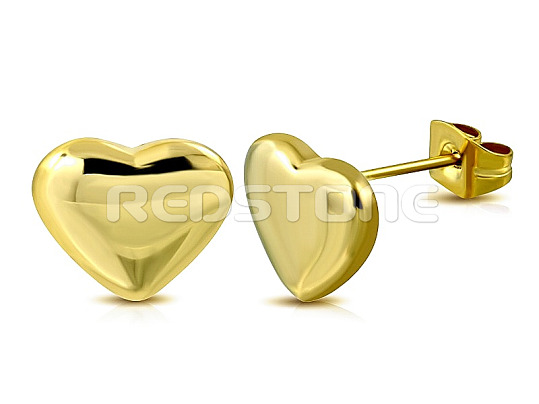 Pozlátené náušnice z chirurgickej ocele, náušnice v tvare srdiečok s lesklým povrchom.