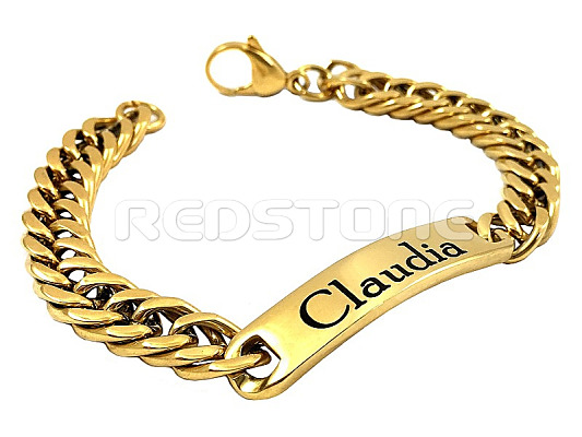 Pozlátený náramok z chirurgickej ocele v lesklom prevedení s gravírovaním.