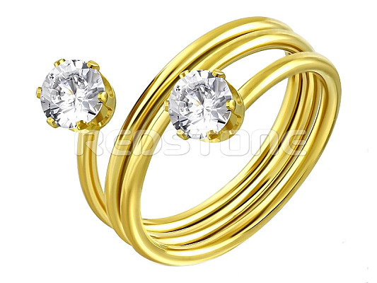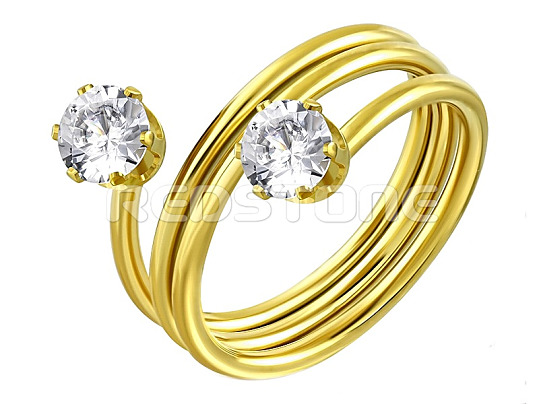 Pozlátený prsteň z chirurgickej ocele v lesklom prevedení, v kombinácii so zirkónmi.