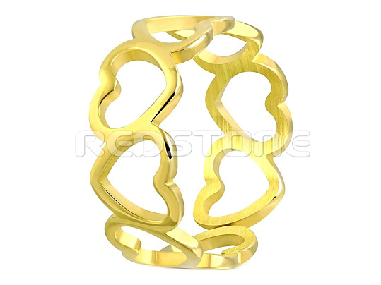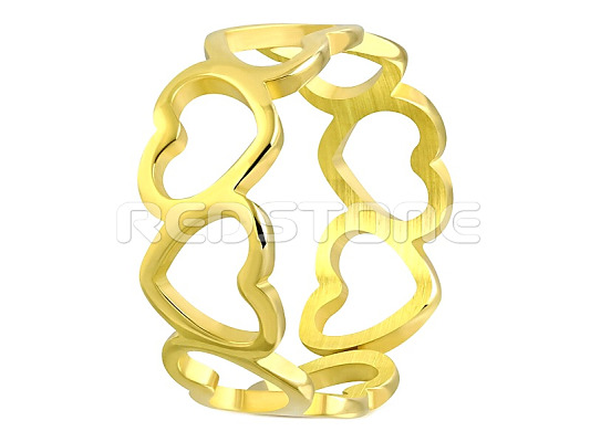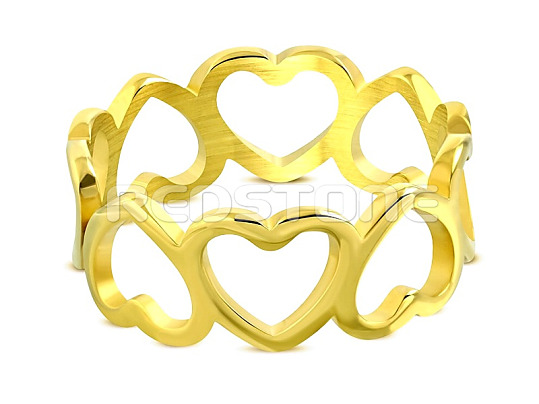 Prsteň z chirurgickej ocele - pozlátené spojené srdiečka s lesklým povrchom.