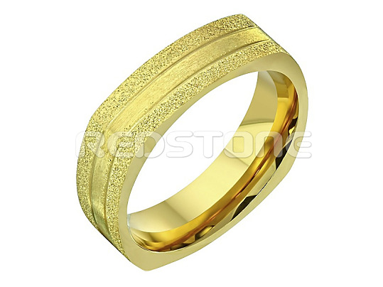Pozlátený prsteň z chirurgickej ocele, v kombinácii lesklého a matného povrchu.