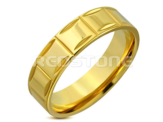 Pozlátený prsteň z chirurgickej ocele s lesklým povrchom.