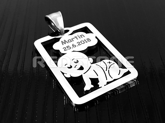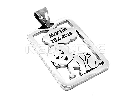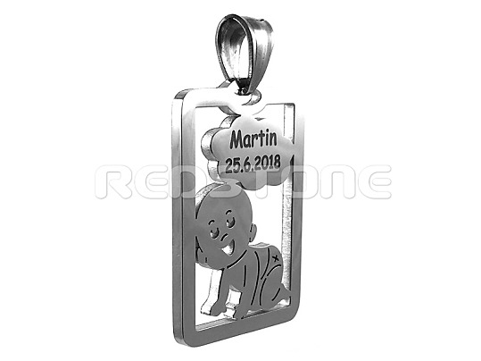 Prívesok - novorodenec s menom a dátumom podľa vášho zadania, prípadne môžete doplniť výšku a váhu.