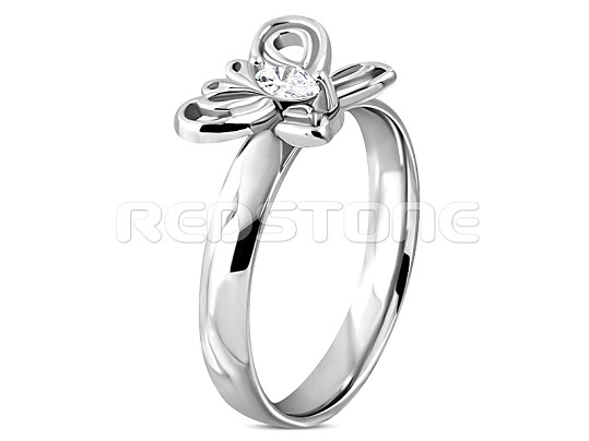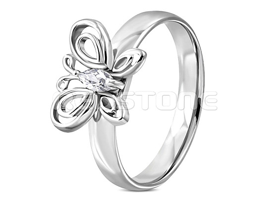 Prsteň z chirurgickej ocele s motýľom a zirkónom.