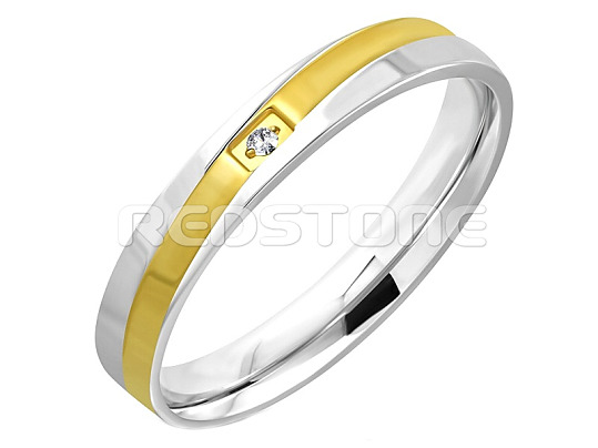 Prsteň z chirurgickej ocele v lesklom prevedení v kombinácii s pozlátenou oceľou a zirkónom.