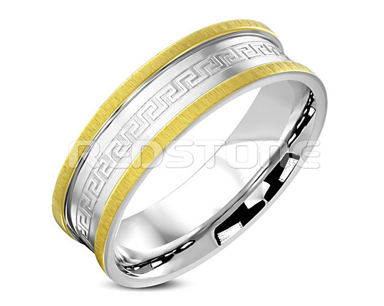 Prsteň z chirurgickej ocele s pozlatenými krajmi prsteňa. Šperk z chirurgickej ocele v lesklom prevedení. Šírka: 7 mm