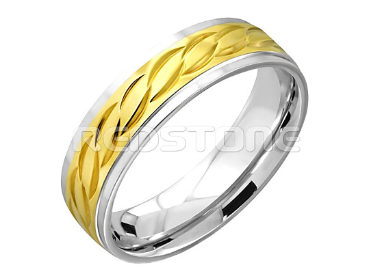 Elegantný prsteň z chirurgickej ocele v kombinácii s pozlátenou oceľou.