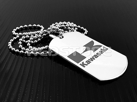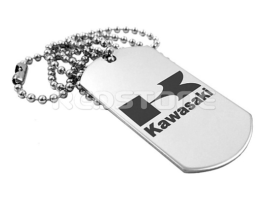 Jednostranná psia známka v matnom prevedení s vygravírovaným logom KAWASAKI.