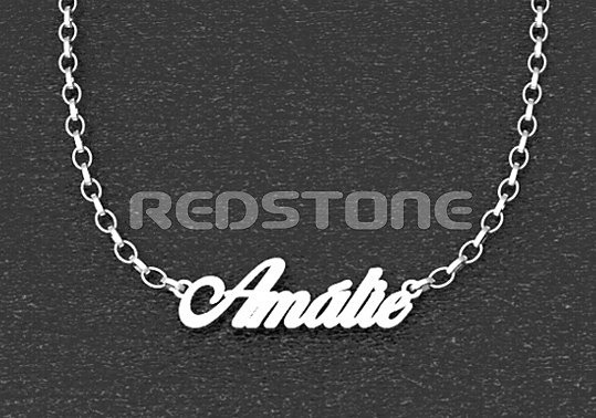 Retiazka s menom z chirurgickej ocele s lesklým povrchom.