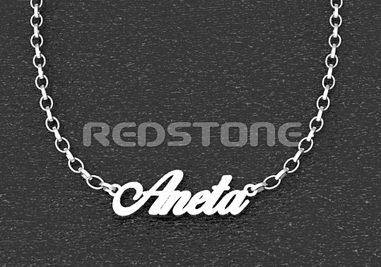 Retiazka s menom z chirurgickej ocele s lesklým povrchom.