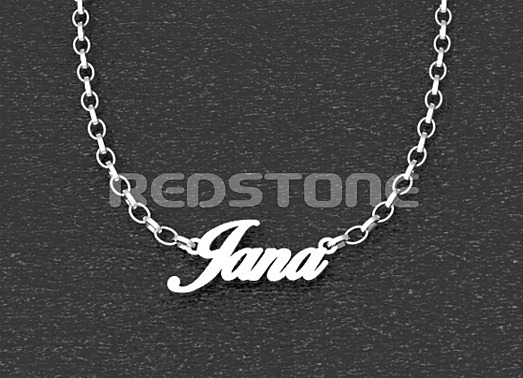 Retiazka s menom z chirurgickej ocele v lesklom prevedení.